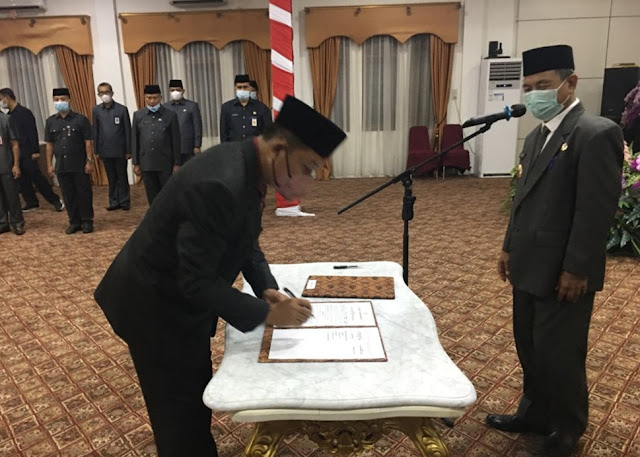 Pelantikan Pj Sekda Merangin ini dilakukan sekira pukul 21.59 WIB dan dihadiri sejumlah Kepala Organisasi Perangkat Daerah.