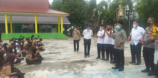 Bupati Merangin, Mashuri bersama Kapolres Merangin AKBP Irwan Andy Purnamawan memantau pelaksanaan vaksinasi Covid-19 para pelajar.