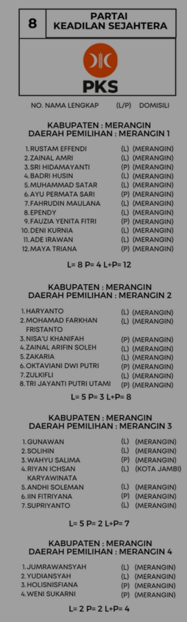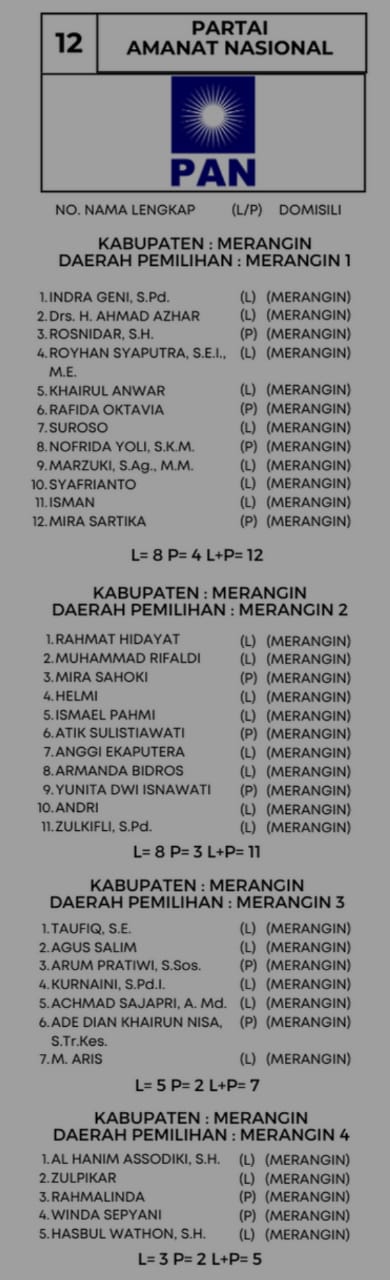 Berikut daftar calon sementara anggota DPRD Kabupaten Merangin dan nomor urutnya: