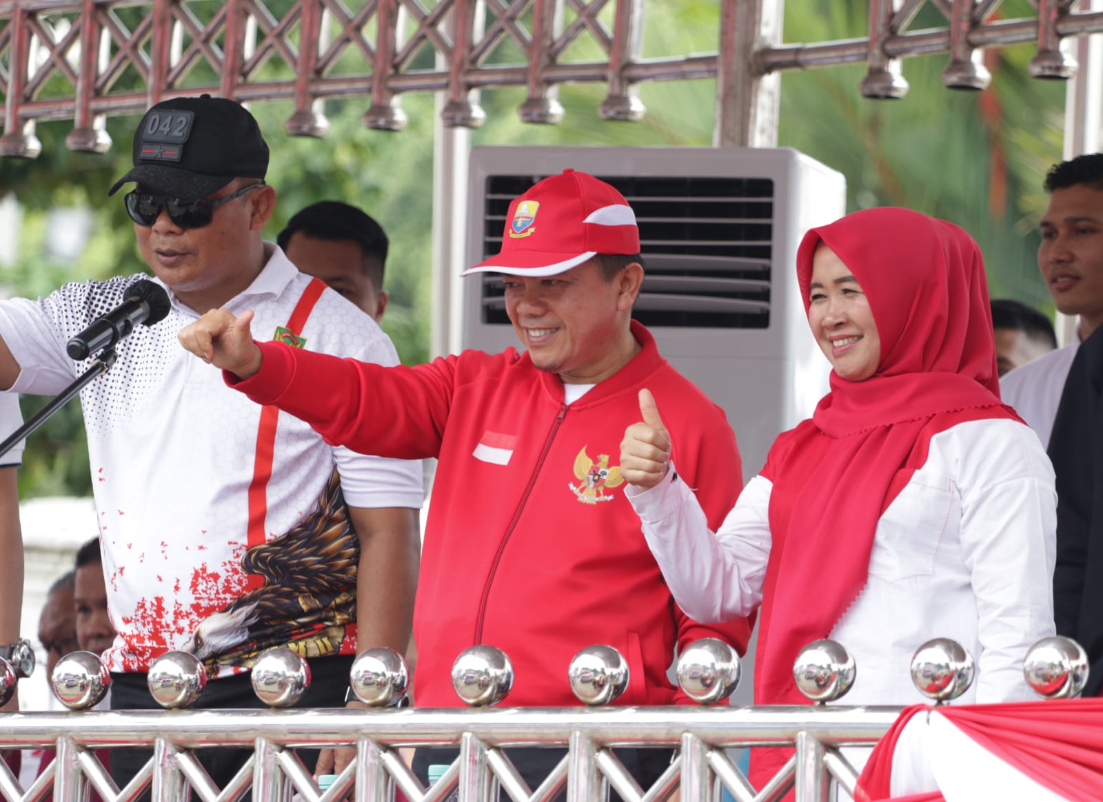 Pawai pembangunan ini dihadiri dan disaksikan langsung Gubernur Jambi, Al Haris beserta istri, para pimpinan forkopimda, dan pejabat eselon II Pemprov Jambi.