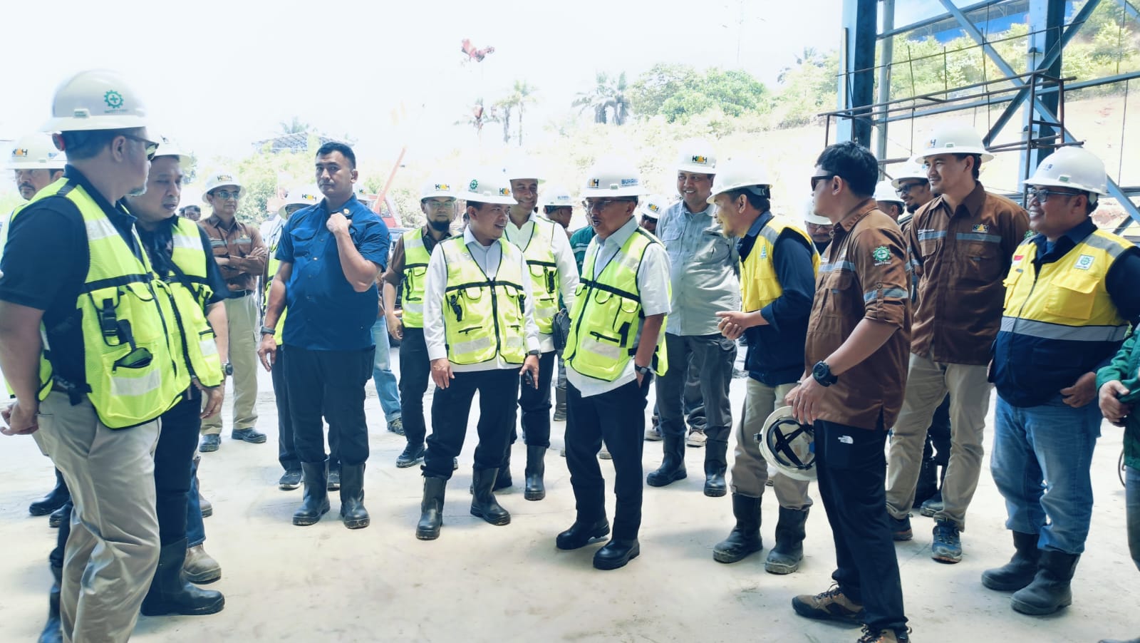 Tiba di PLTA KMH, Al Haris langsung di ajak JK mendengarkan persentase progres pembangunan perusahaan listrik tenaga air (PLTA) tersebut.