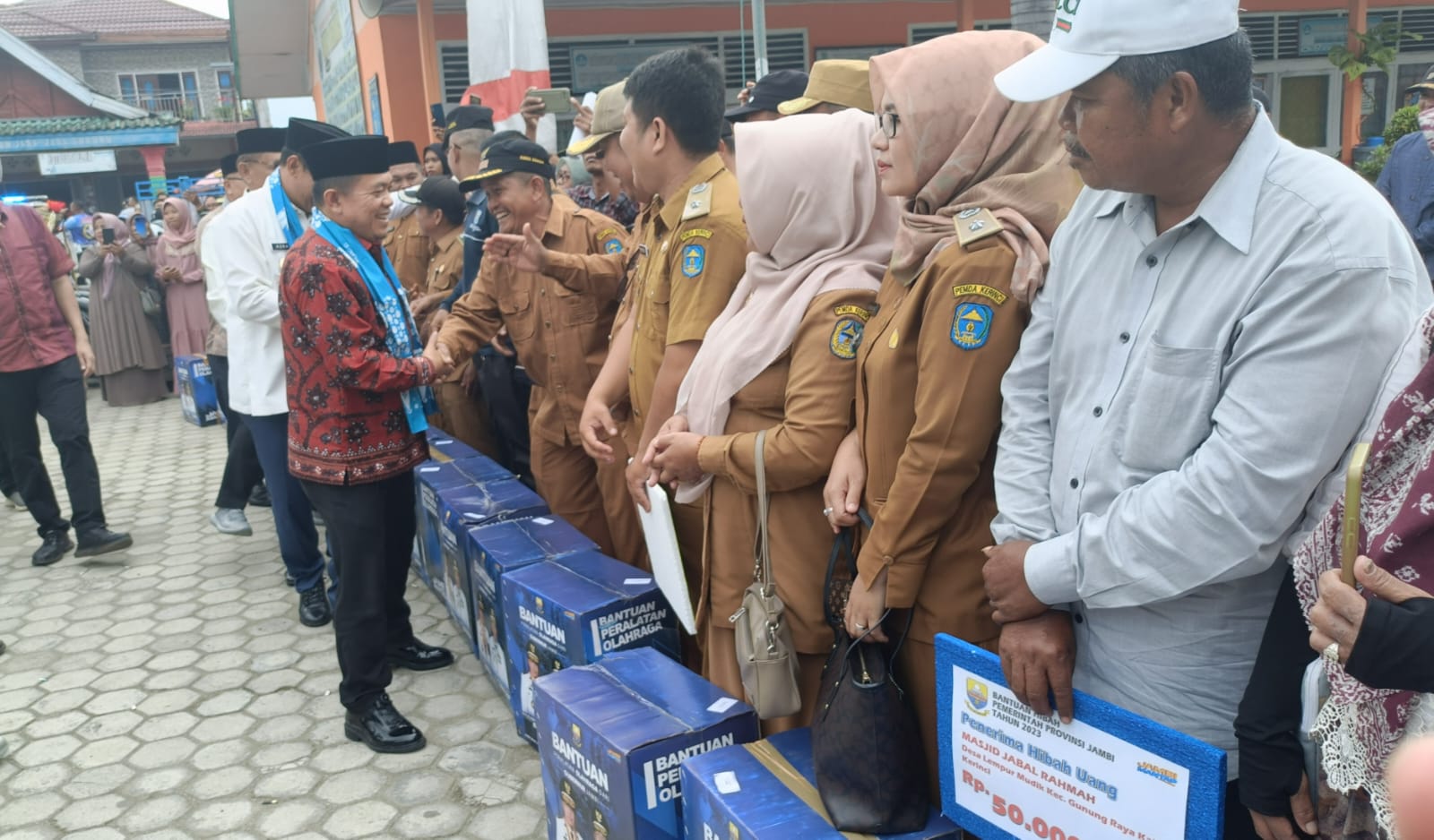 “Hari ini kita menyerahkan peralatan olahraga untuk pemuda, selanjutnya juga bantuan hibah masjid, untuk pondok pesantren, kita juga memberikan bantuan pendidikan, dan juga bantuan untuk pertanian,” kata Al Haris.