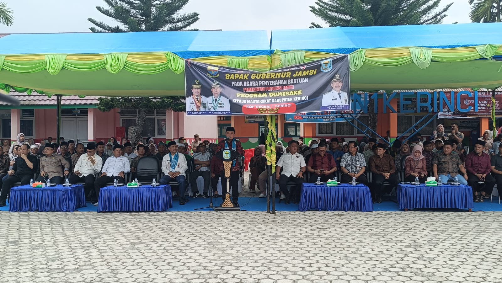 Bantuan serupa juga diserahkan Gubernur Jambi Al Haris untuk Kabupaten Kerinci. Bantuan ini diserahkan Gubernur Jambi Al Haris didampingi Pj Bupati Kerinci Asraf di SMP 1 Kerinci, Jumat (24/11/2023) sore.