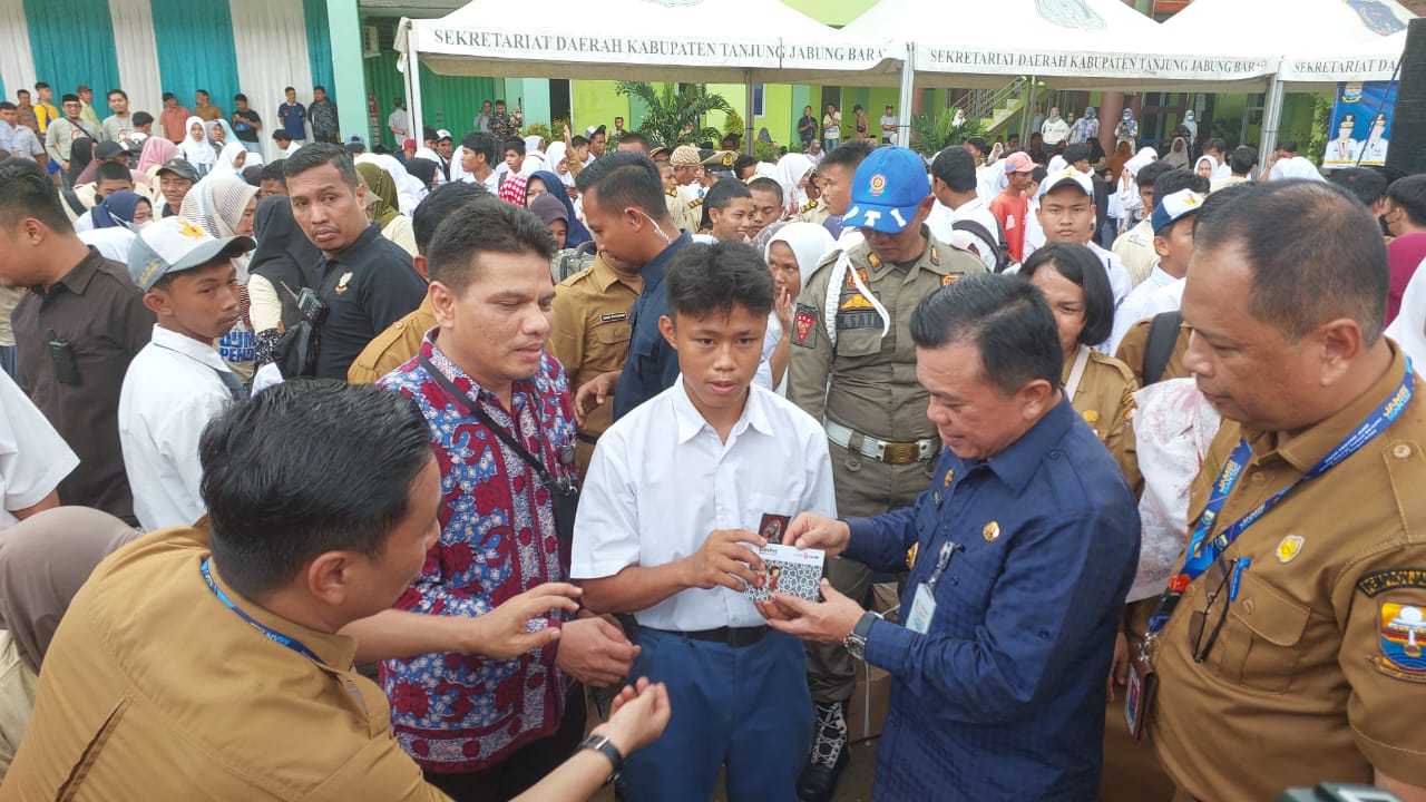Adapun bantuan yang diserahkan oleh Gubernur Al Haris kepada masyarakat Tanjabar diantaranya, bantuan pendidikan untuk siswa SMA, SMK dan SLB dengan ekonomi tidak mampu berjumlah 576 siswa.