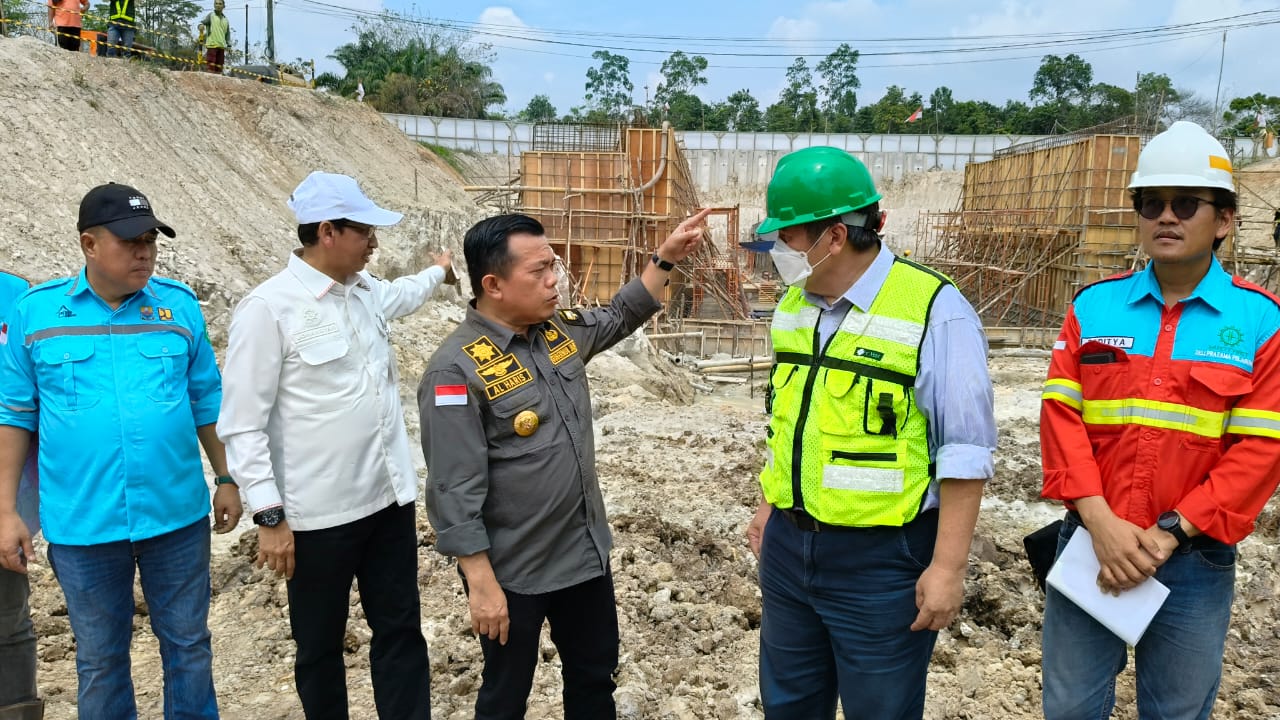 Pariwarajambi.com – Gubernur Jambi, Al Haris didampingi Kepala Dinas PUPR Provinsi Jambi, Muzakir meninjau pengerjaan Underpass jalan khusus batu bara di Desa Tenam, Batanghari, Jumat (2/8/2024).