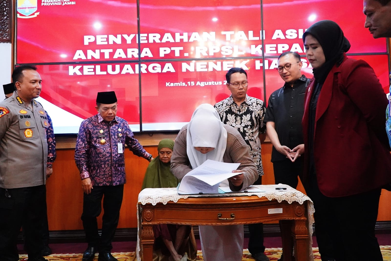 Gubernur Al Haris juga menyampaikan bahwa dengan adanya kesepakatan ini, artinya kedua belah pihak sudah berdamai. “Dalam masalah ini sudah menjadi perbincangan hangat disemua kalangan, tapi ini semuanya ada puncaknya dan akhirnya, selama ini tentu ada prosesnya, seperti manusia ada lahir tentu ada matinya, dimana pihak perusahaan sudah bersedia memberikan santunan atau tali asih kepada pihak keluarga Nenek Hapsah,” ucap Gubernur Al Haris.
