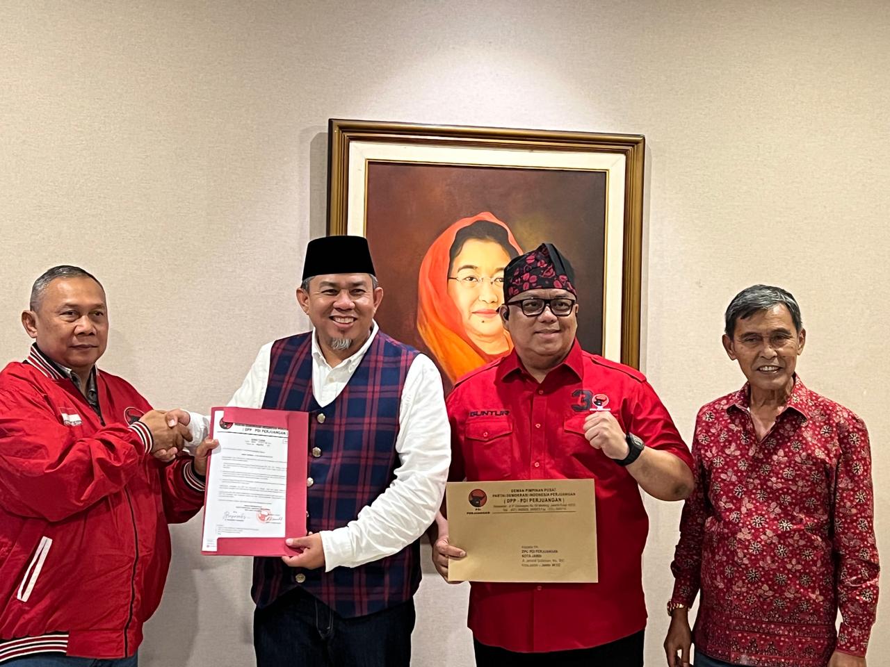 H Abdul Rahman didampingi AM Guntur Muchtar menerima rekomendasi dari PDI-P tersebut.