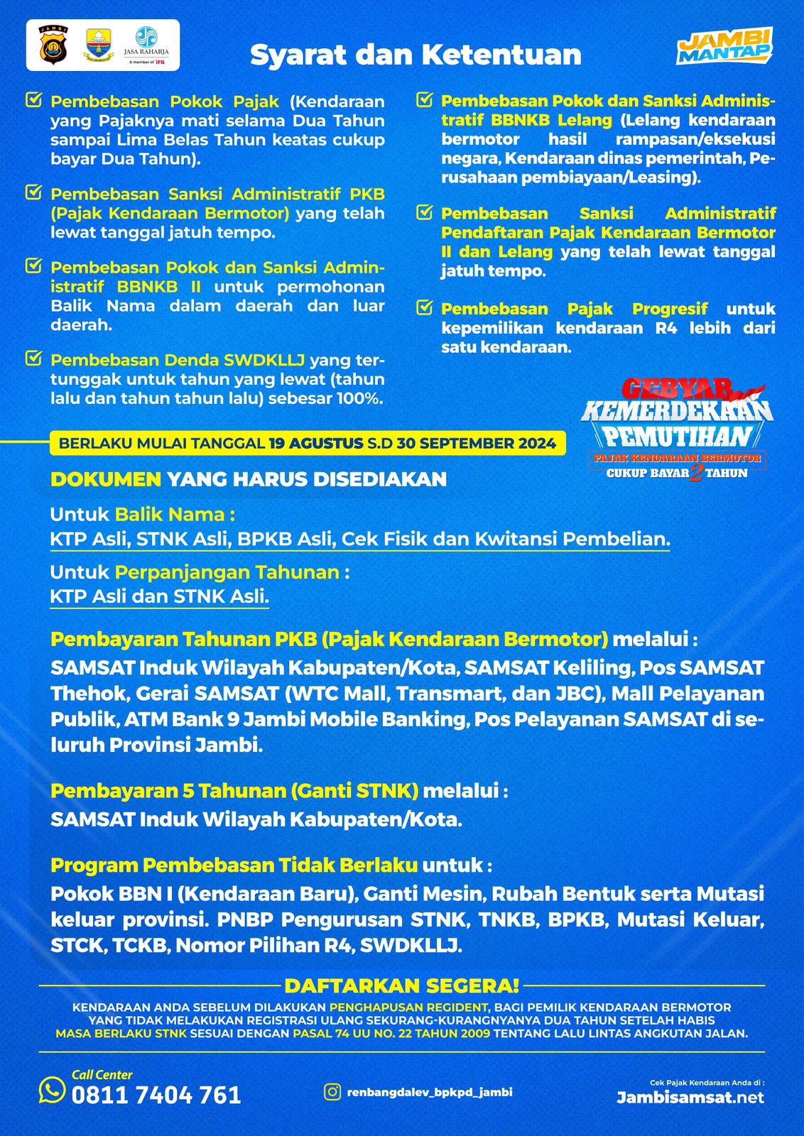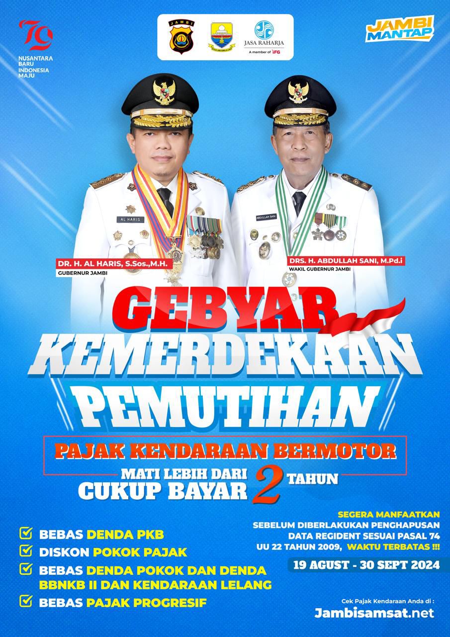 Baca juga: Gebyar Kemerdekaan! Pemprov Jambi Adakan Pemutihan Pajak Kendaraan. Ini Syarat dan Ketentuannya