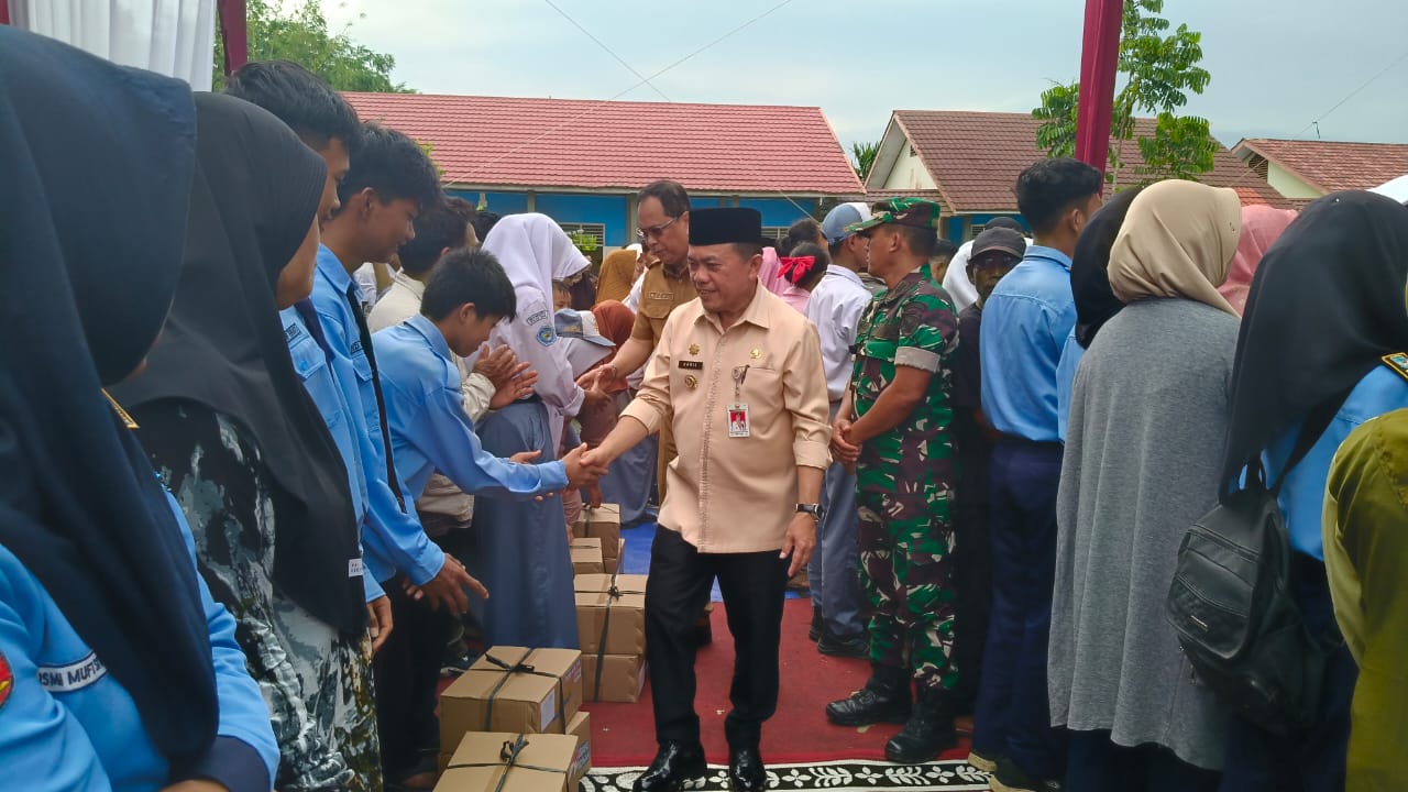 Penyerahan bantuan Dumisake untuk warga bumi sepucuk Nipah serumpun Nibung ini berlangsung di SMA Negeri 8 Tanjung Jabung Timur, Selasa (17/09/2024).