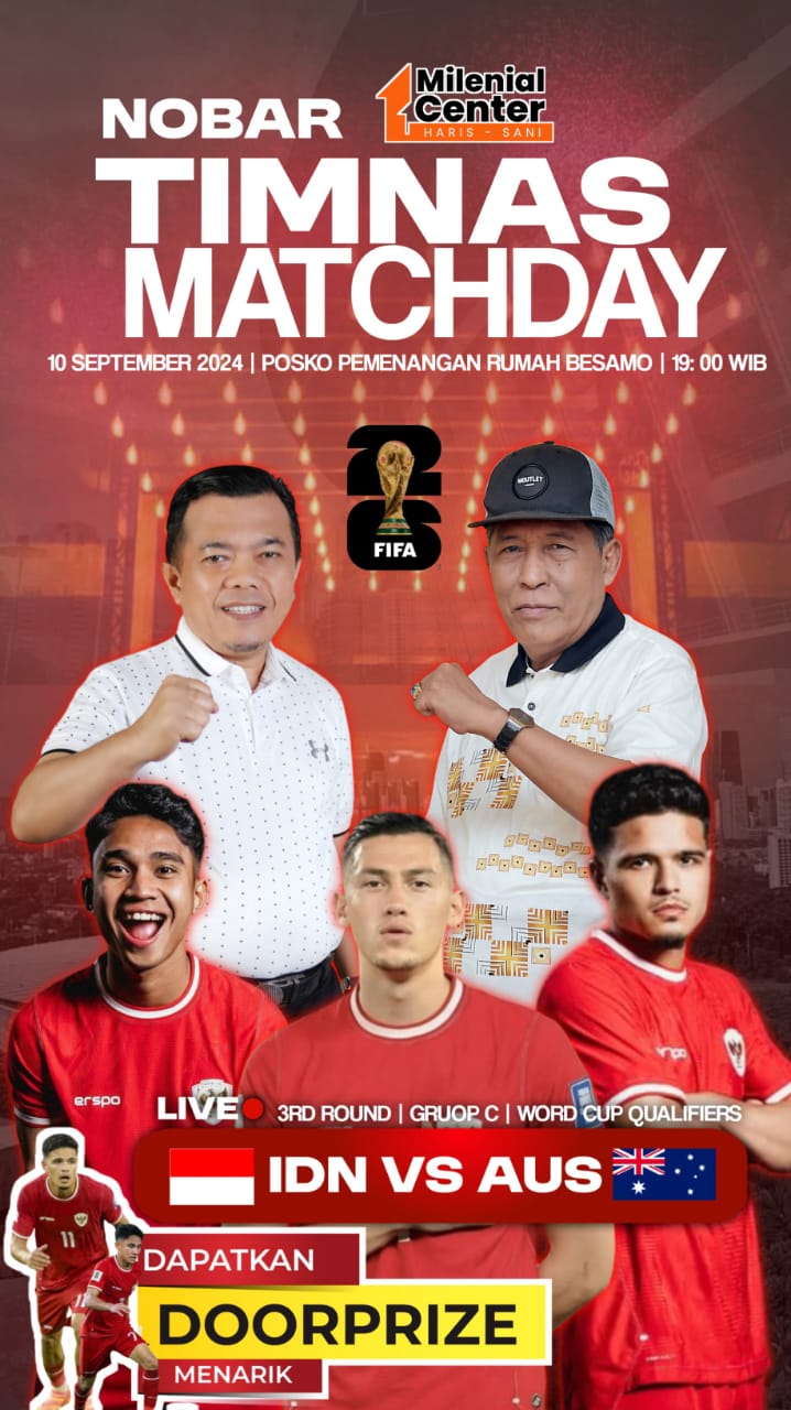 Laga Indonesia vs Australia ini pun akan disiarkan secara live. Bagi warga Provinsi Jambi, calon Gubernur Jambi dan Wakil Gubernur Jambi, Al Haris-Abdullah Sani (Haris-Sani) mengadakan nonton bareng (Nobar).
