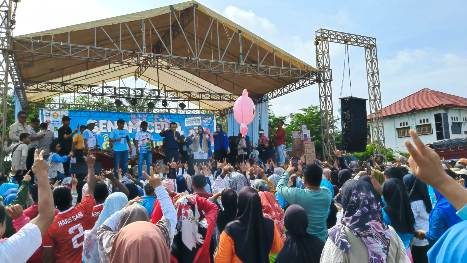 Bertempat di lapangan terminal Baru Kecamatan Rimbo Bujang, senam ceria bersama Al Haris ini dipadati ribuan warga Rimbo Bujang.