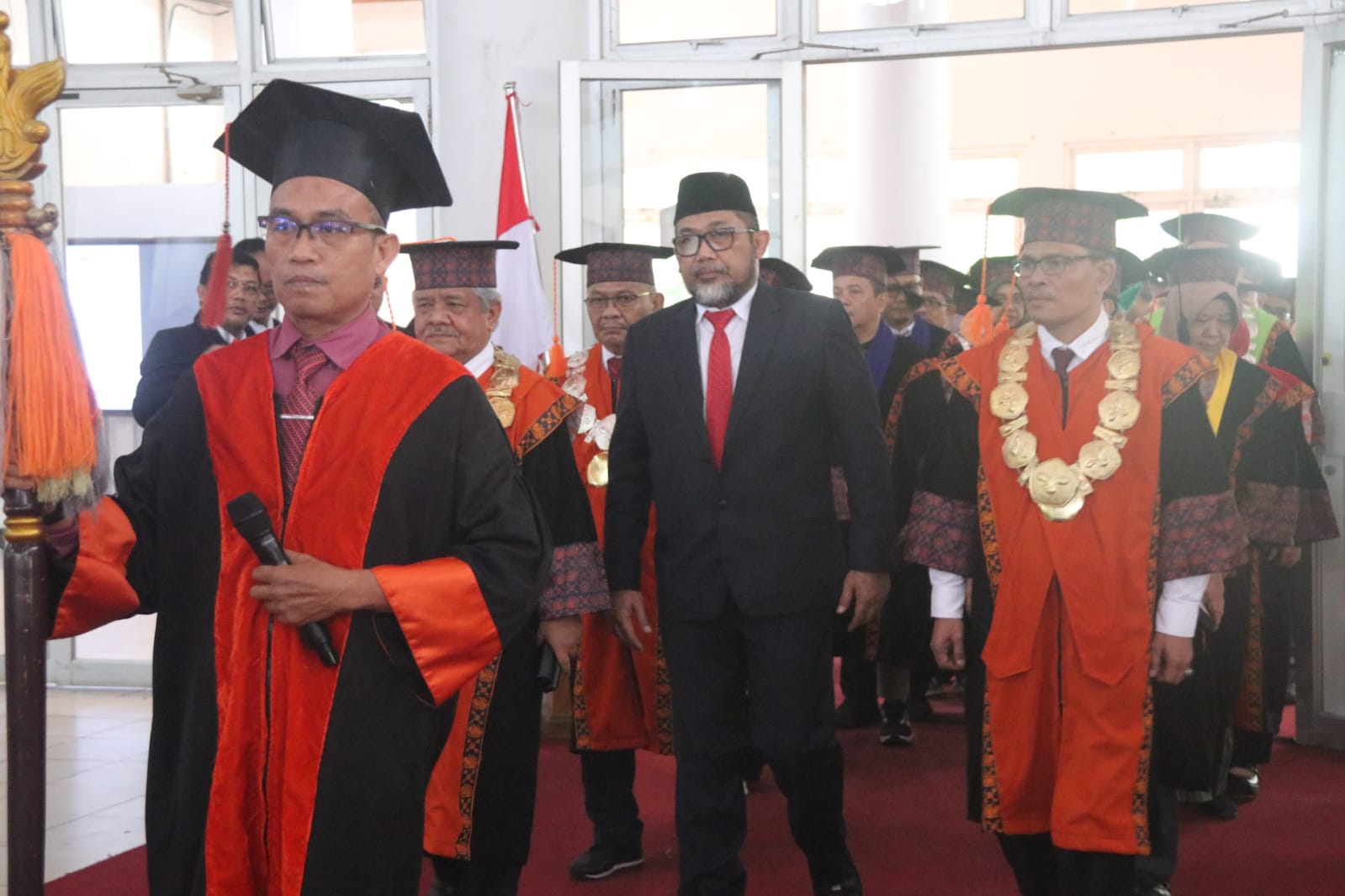 “Selanjutnya, saya menyampaikan ucapan selamat atas pencapaian Bapak/Ibu sekalian beserta keluarga. Keberhasilan menyelesaikan studi di salah satu perguruan tinggi terbaik di Provinsi Jambi ini hendaknya disyukuri, dirayakan, dan selanjutnya diwujudkan dalam kontribusi nyata yang bermanfaat bagi diri sendiri dan lingkungan sekitar,” lanjutnya.