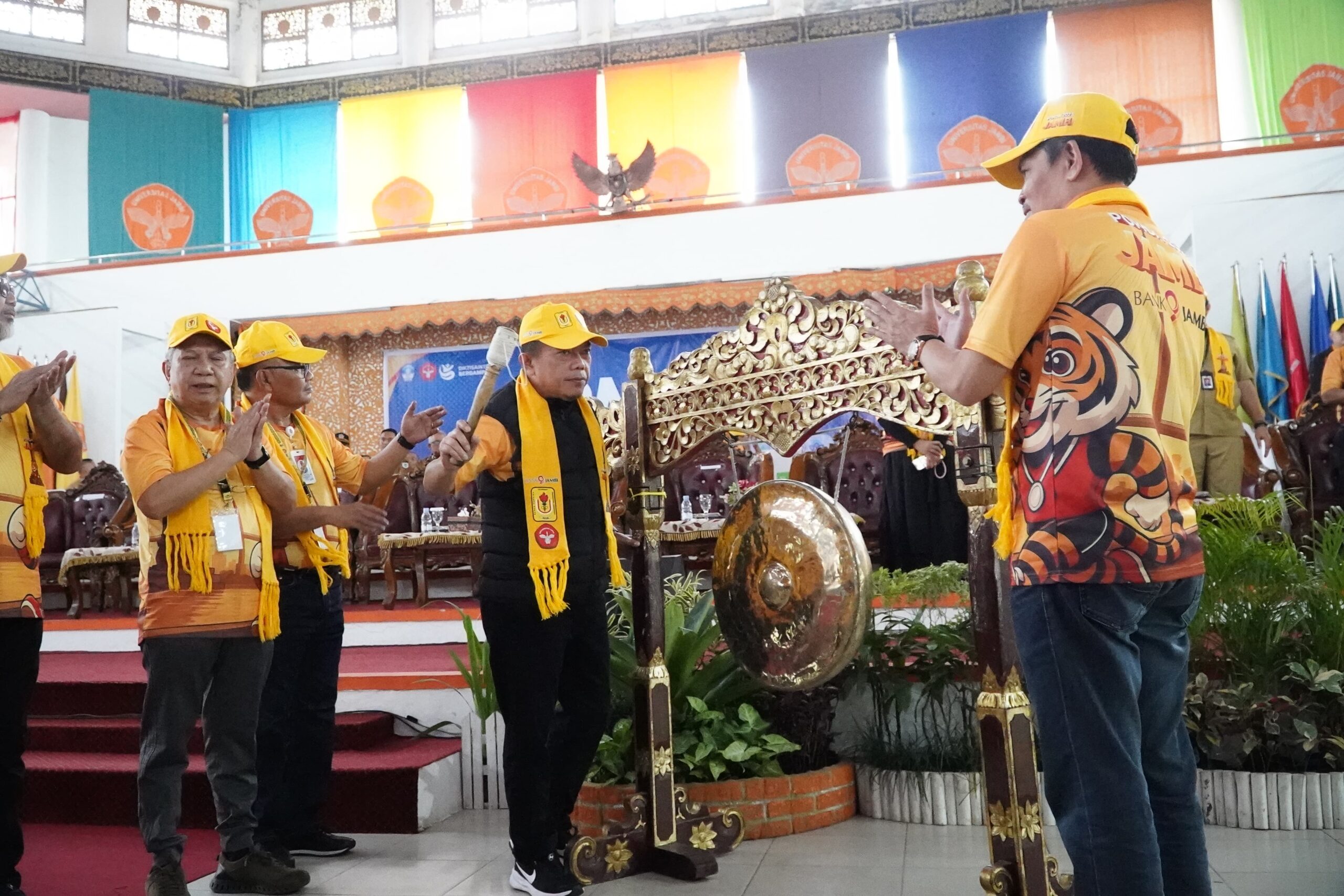 Pariwarajambi.com – Gubernur Jambi Al Haris membuka secara resmi Pekan Olahraga Mahasiswa Daerah (POMDA) Ke-19 Provinsi Jambi tahun 2025. Pembukaan ini ditandai dengan pemukulan gong sebagai tanda dibukanya acara secara resmi, bertempat di Balairung Universitas Jambi, Selasa (08/07/2025) pagi.