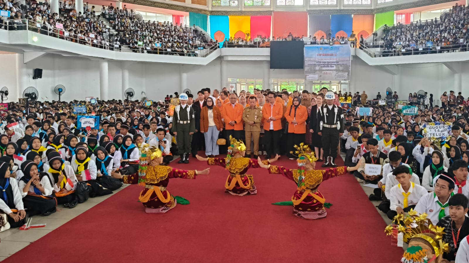 Pada moment ini, Gubernur Jambi Al Haris memberikan motivasi kepada 8.000 lebih mahasiswa baru yang hadir memenuhi Balairung Universitas Jambi.