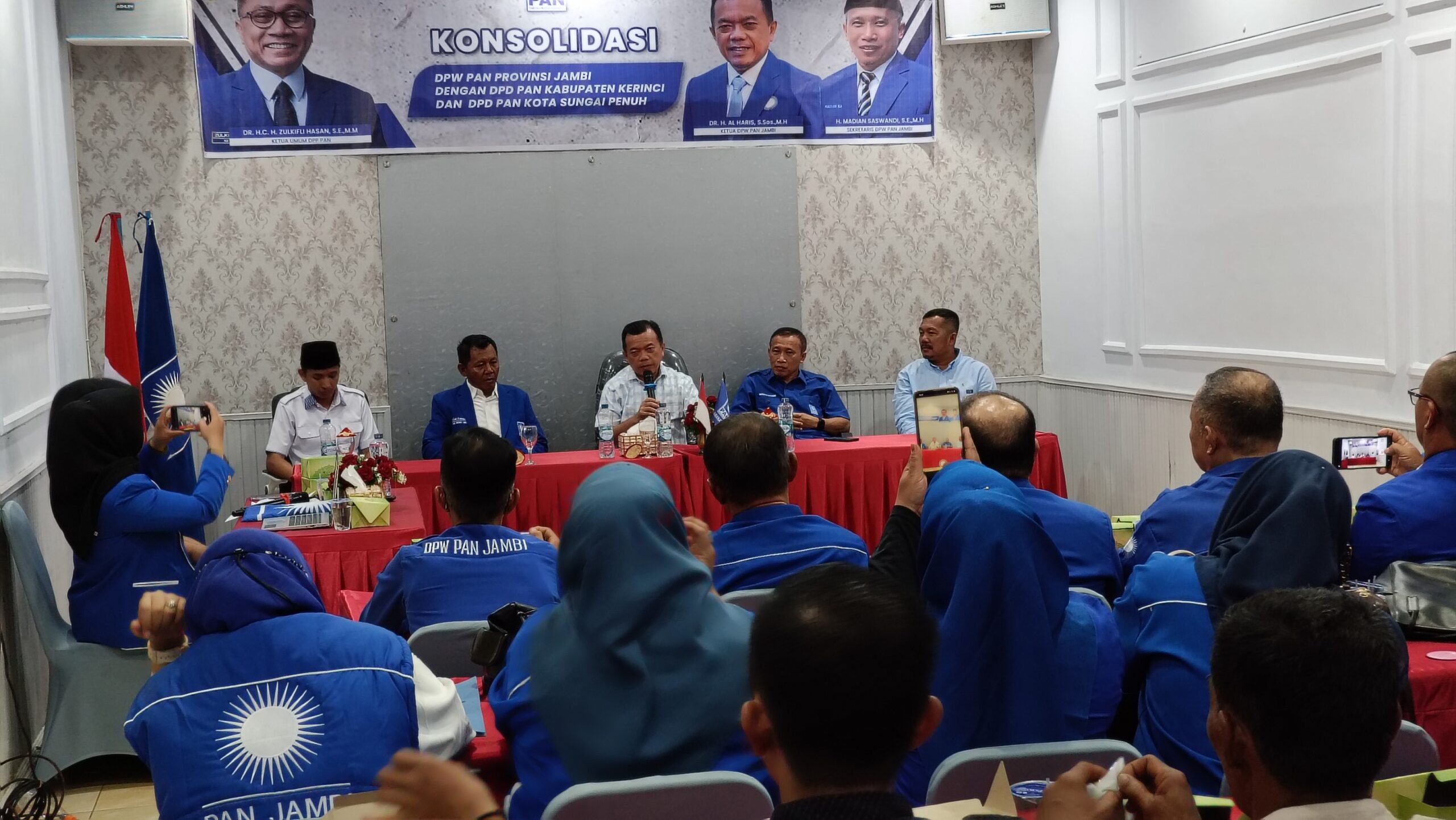 Pariwarajambi.com – Ketua DPW PAN Provinsi Jambi, Al Haris, memimpin langsung konsolidasi Partai Amanat Nasional (PAN) Kabupaten Kerinci dan Kota Sungai Penuh. Rapat konsolidasi ini dihadiri pengurus DPD PAN dua daerah tersebut, termasuk Sekretaris DPD PAN Kerinci yang juga Bupati Kerinci, Monadi.
