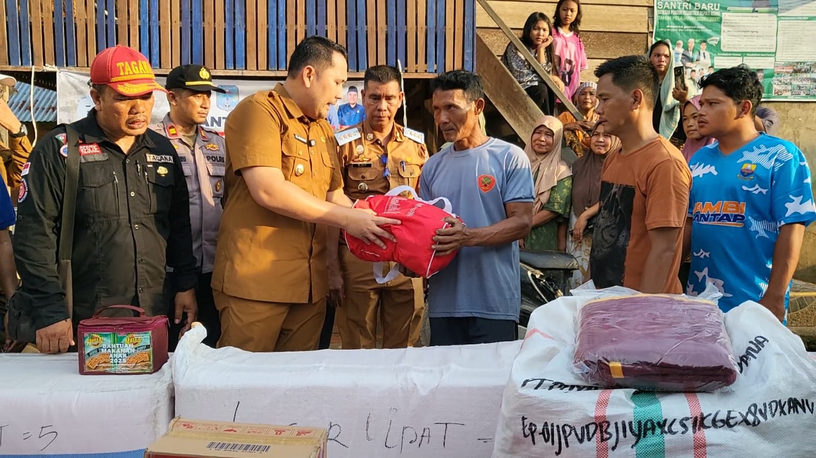 Pariwarajambi.com – Bupati Merangin H M Syukur bersama rombongan menyalurkan bantuan untuk warga korban banjir, di Desa Rantau Limau Kapas dan Desa Baru Sakai Kecamatan Tiang Pumpung, Selasa (28/04/2026).