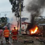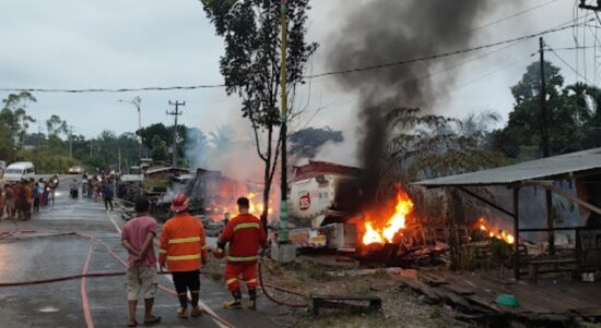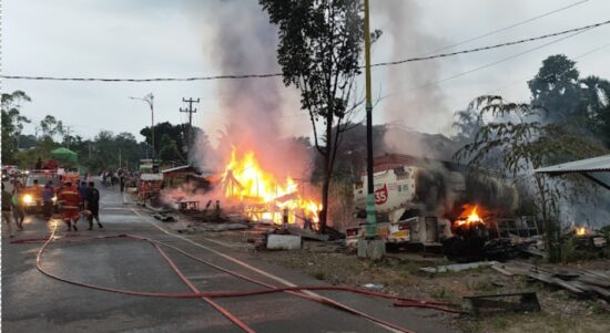 Pariwarajambi.com – Deretan kios minyak depan SPBU Sungai Misang Bangko, hangus dilalap